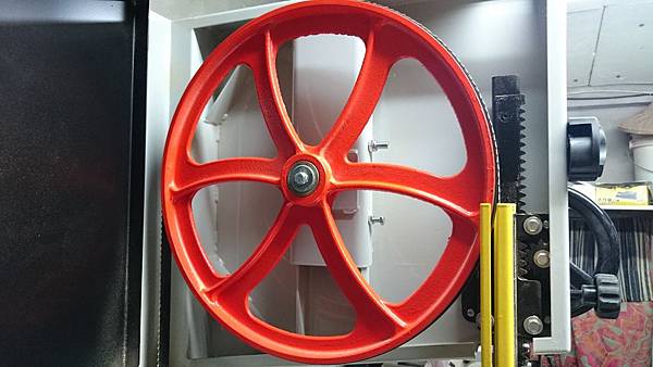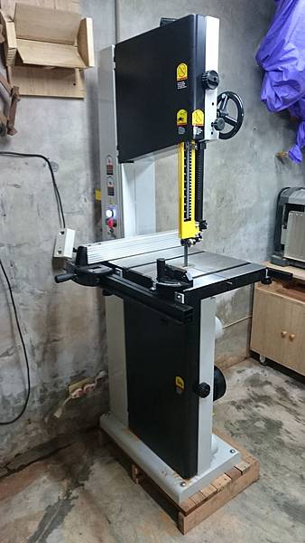 玩木工重要的是要有空間,一直就想要買台帶鋸來使用,因空間太小而不敢買,總不能都用圓鋸跟手鋸來剖會累死人阿,看了這台14"的帶鋸大小還可以,可鋸切高度又夠整理一下空間應該放得下去就給他買下在說了。
